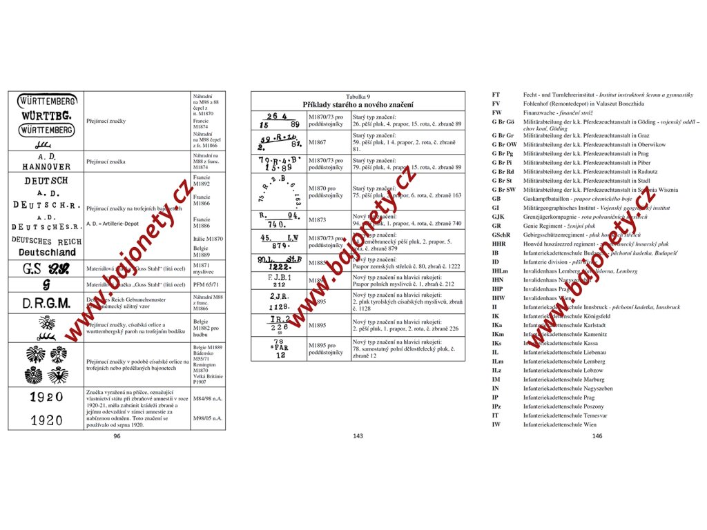 Často se stává, že je značka otisknutá jen částečně a zde je možnost značky porovnat a určit. Kniha je rozdělena na tři části, v první jsou značky výrobců bodáků nebo jejich dílů. Ve druhé části jsou přejímací a kontrolní značky. Třetí část popisuje identifikační značky útvarů několika států. Značky útvarů bývají nejkomplikovanější, jejich styl nejvíce odpovídá šikovnosti konkrétního útvarového zbrojíře a jeho interpretaci prováděcího předpisu.